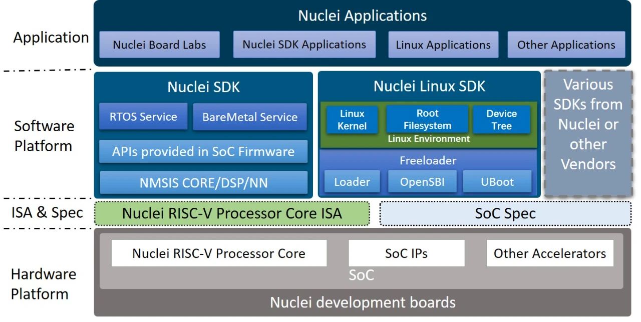 芯片是信息技术产业链中的重要基石,也是我国落后于国际水平的技术领域之一。发展自主可控的芯片技术,并打破 Intel、高通、Arm等巨头在芯片技术上的垄断,已成为当下亟待解决的问题。作为软硬件的接口的处理器指令集,是构建芯片生态和发展芯片技术的核心部分,其重要性不言而喻。在此背景下,RISC-V有望成为新的选择。尽管具有通用、开放与免费的先期优势,但相比已经成熟的Arm和Intel x86,国内RISC-V生态仍然存在着不足,配套的软硬件、工具链、OS都需要均衡的发展。在此环境下RT-Thread Studio对芯来科技RISC-V处理器内核开发的全面支持,为RISC-V本土化应用生态的发展提供了强有力支撑。